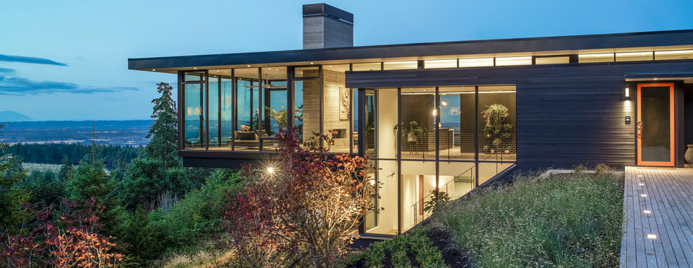Chehalem Dağları’nda beş farklı zirveyi, ova boyunca uzanan üzüm bağlarının etkileyici manzarasına sahip eğimli bir arsa üzerinde yer alan Five Peaks Gözlem Evi’nde, ev sahibi için, manzara seyrini üst düzeye çıkarmak,