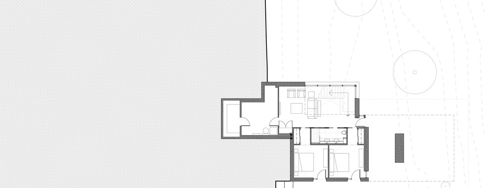 Öncelikle, güneyden kuzeye uzanan doğrusal bir kütle tasarladılar. Eğimli peyzaj arsasına dik olarak konumlanan bu kütlenin bir ucu toprak ile etkileşimli iken, eğime doğru etkileyici bir konsol ve konsolun yükünü taşıyan beton kolon, tasarımın ana unsurlarını oluşturmaktadır.